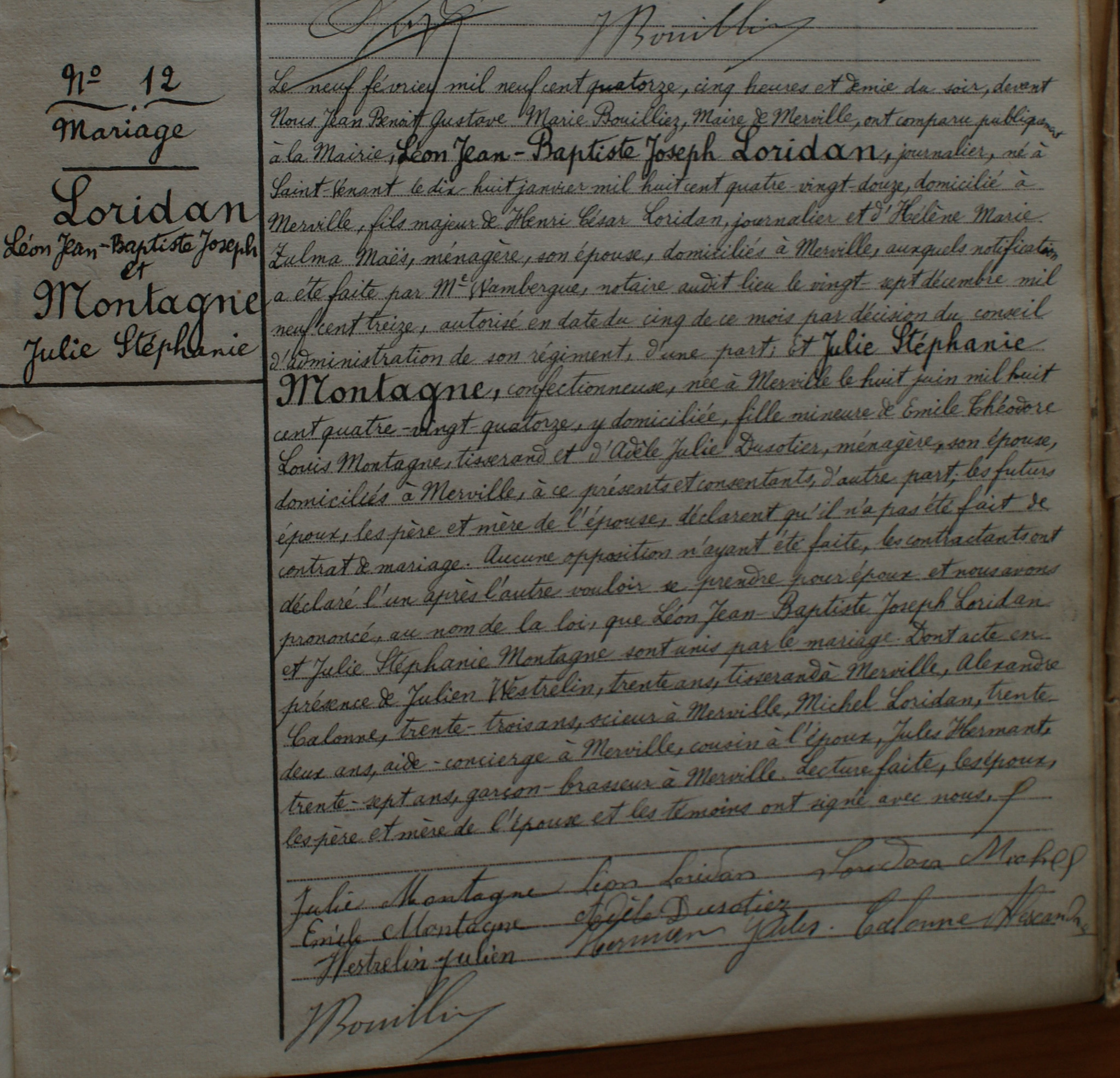 Famille: LORIDAN Léon Jean-Baptiste Joseph / MONTAGNE Julie Stéphanie (F010368)