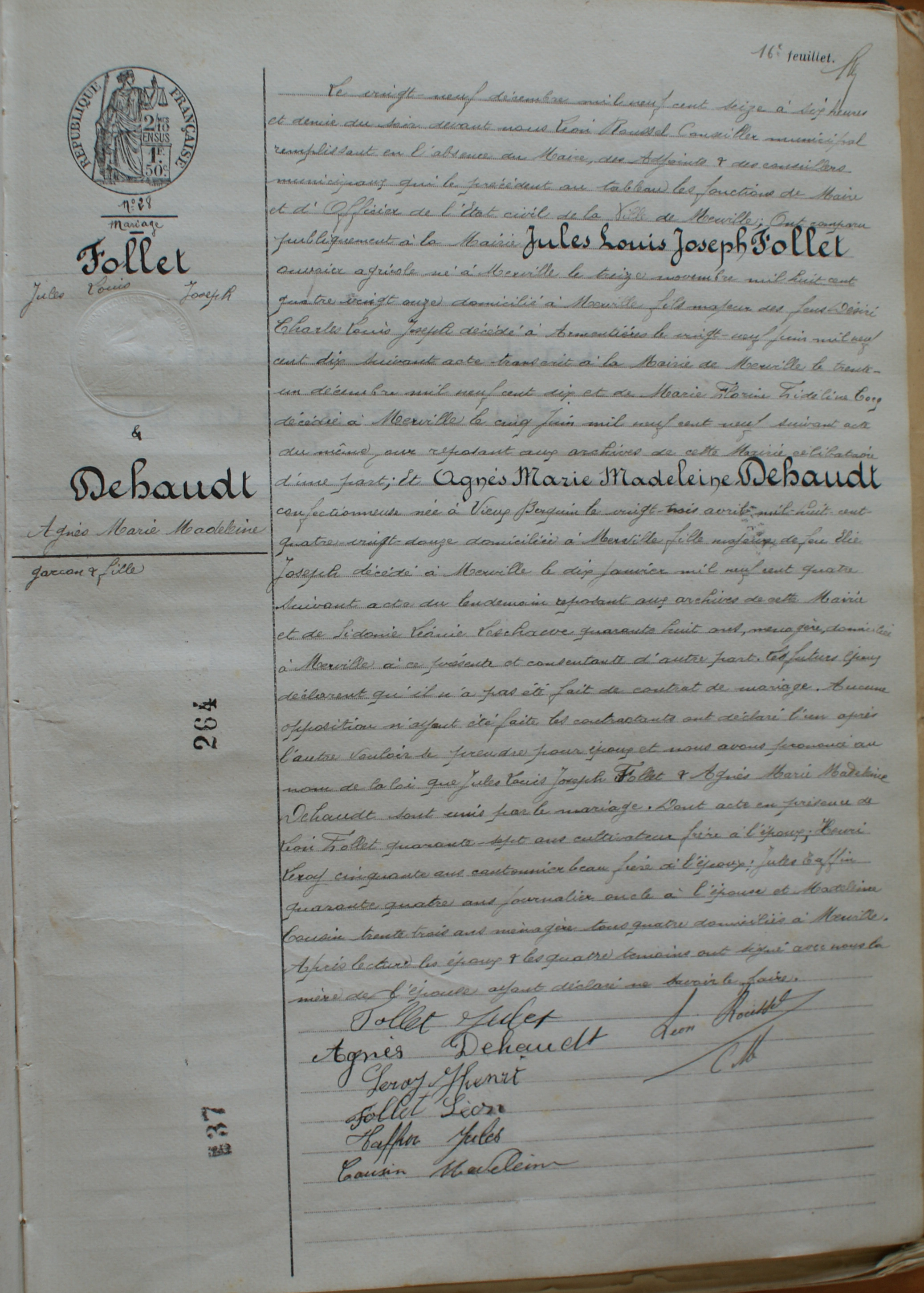 Famille: FOLLET Jules Louis Joseph / DEHAUDT Agnès Marie Madeleine (F010375)