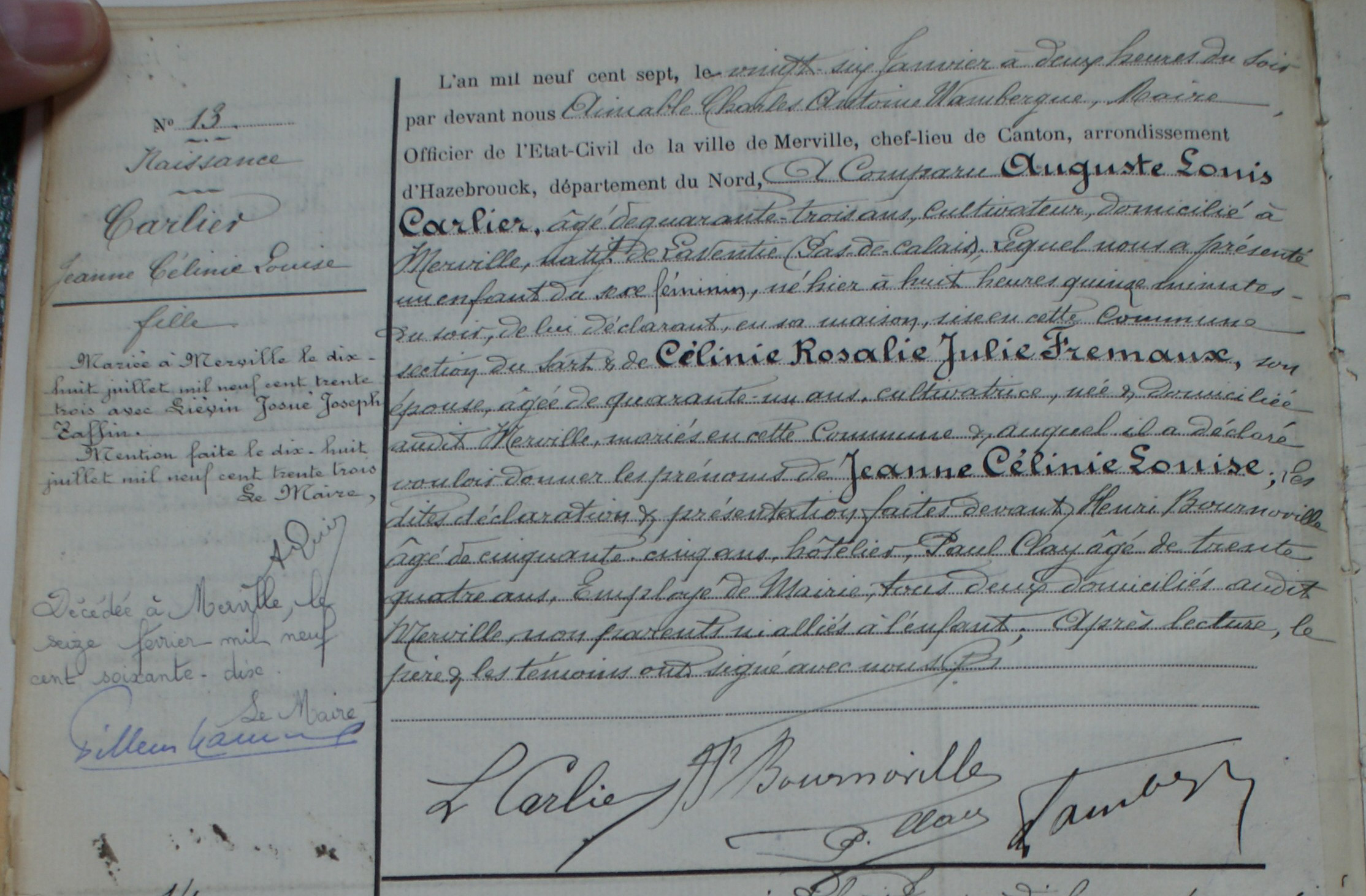 Nom CARLIER Jeanne Celinie Louise Parenté