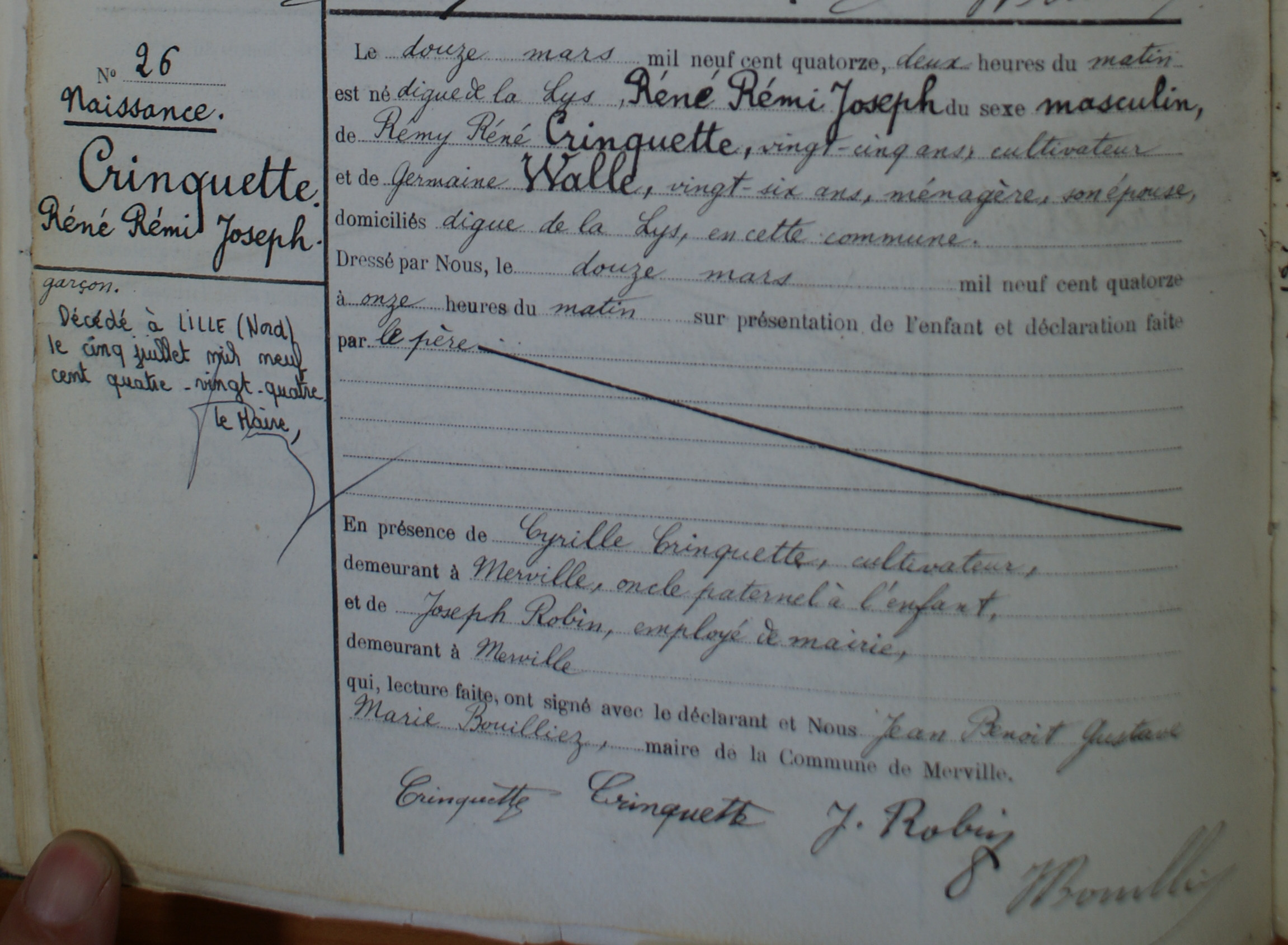 Nom CRINQUETTE René Rémi Joseph Parenté
