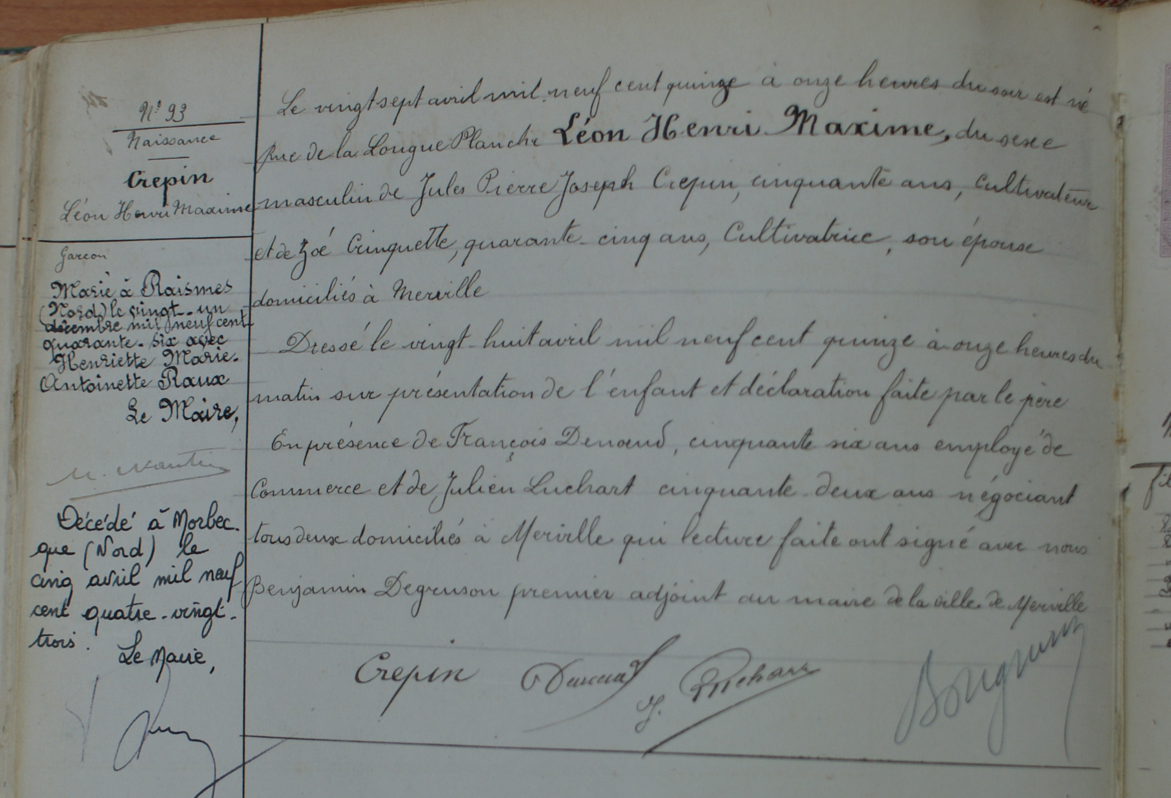 Prénom: Léon Henri Maxime Léon Henri Maxime | Nom: CREPIN CREPIN