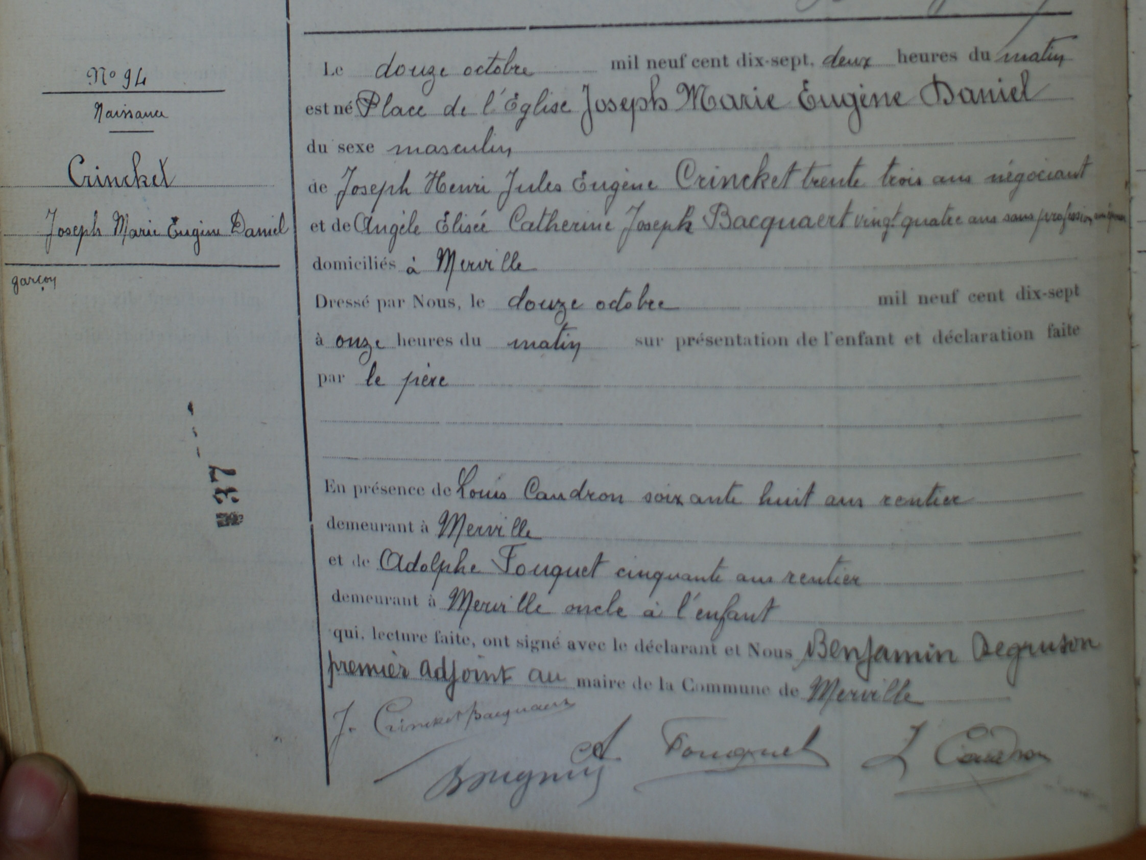 Prénom: Joseph Marie Eugene Daniel Joseph Marie Eugene Daniel | Nom: CRINCKET CRINCKET