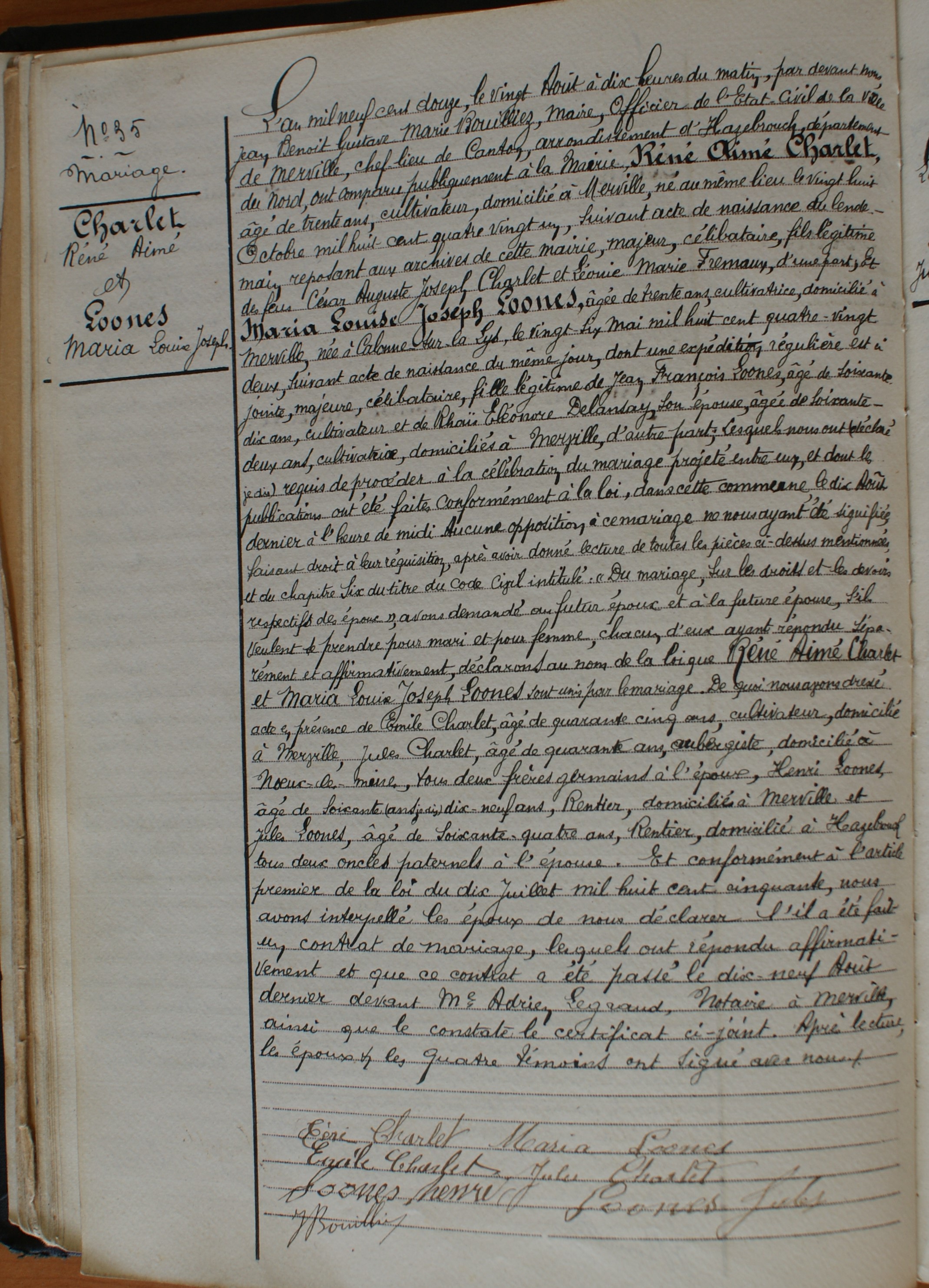 Famille: CHARLET René Aimé / LOONES Maria Louise Joseph (F011157)