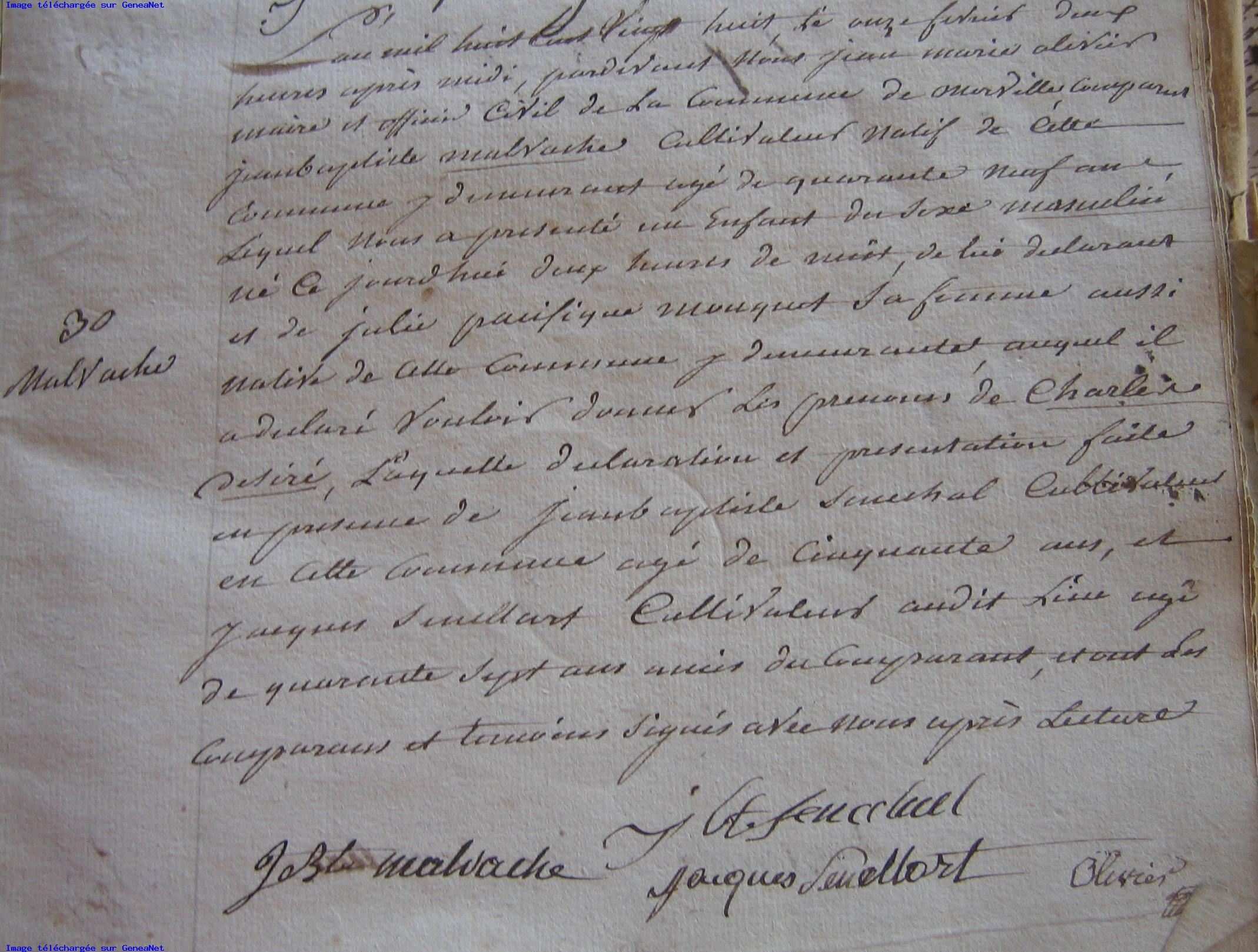 Acte de Naissance Desire Charles MALVACHE