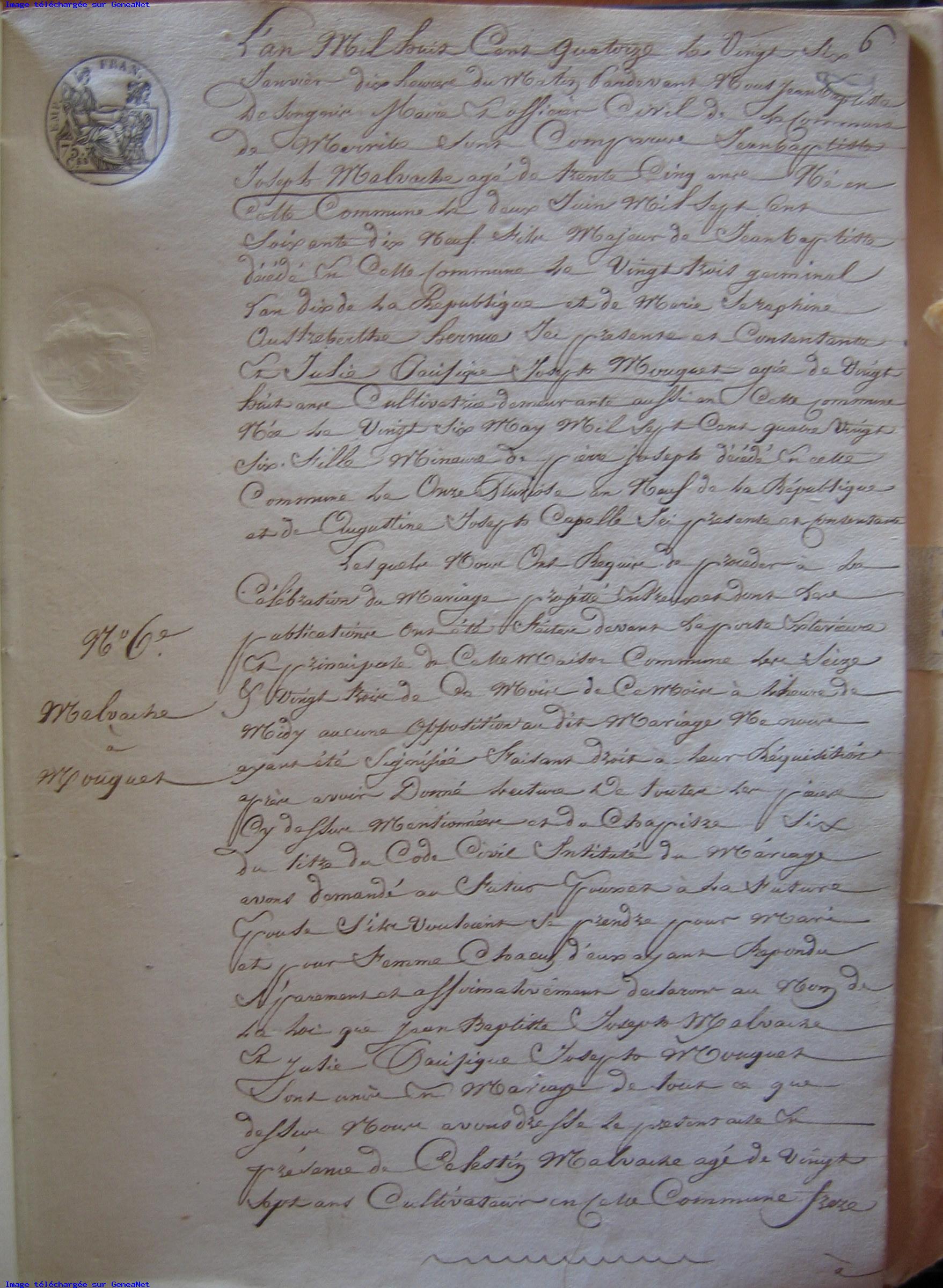 Acte de mariage MALVACHE - LECOCQ