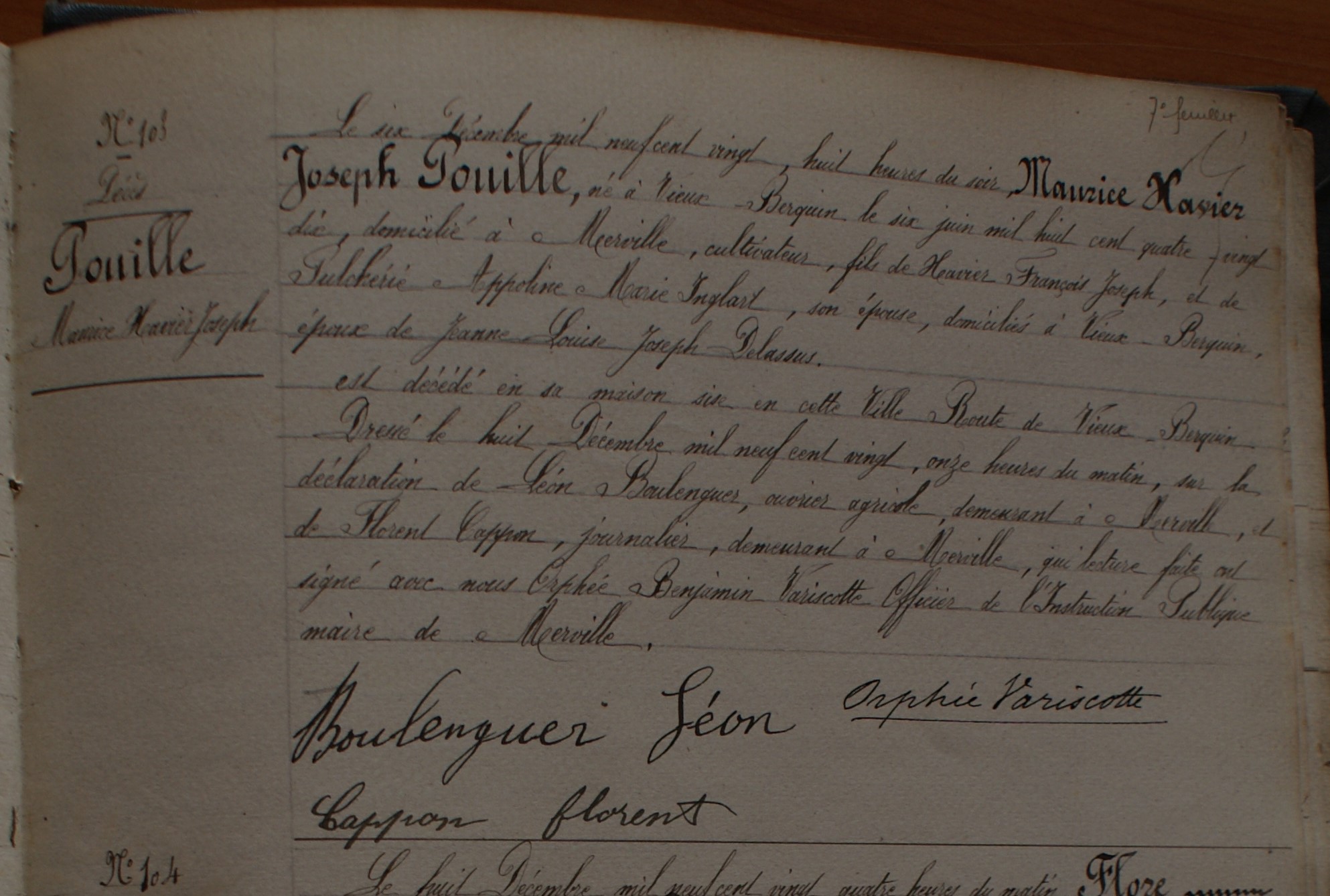 Prénom: Maurice Xavier Joseph Maurice Xavier Joseph | Nom: POUILLE POUILLE