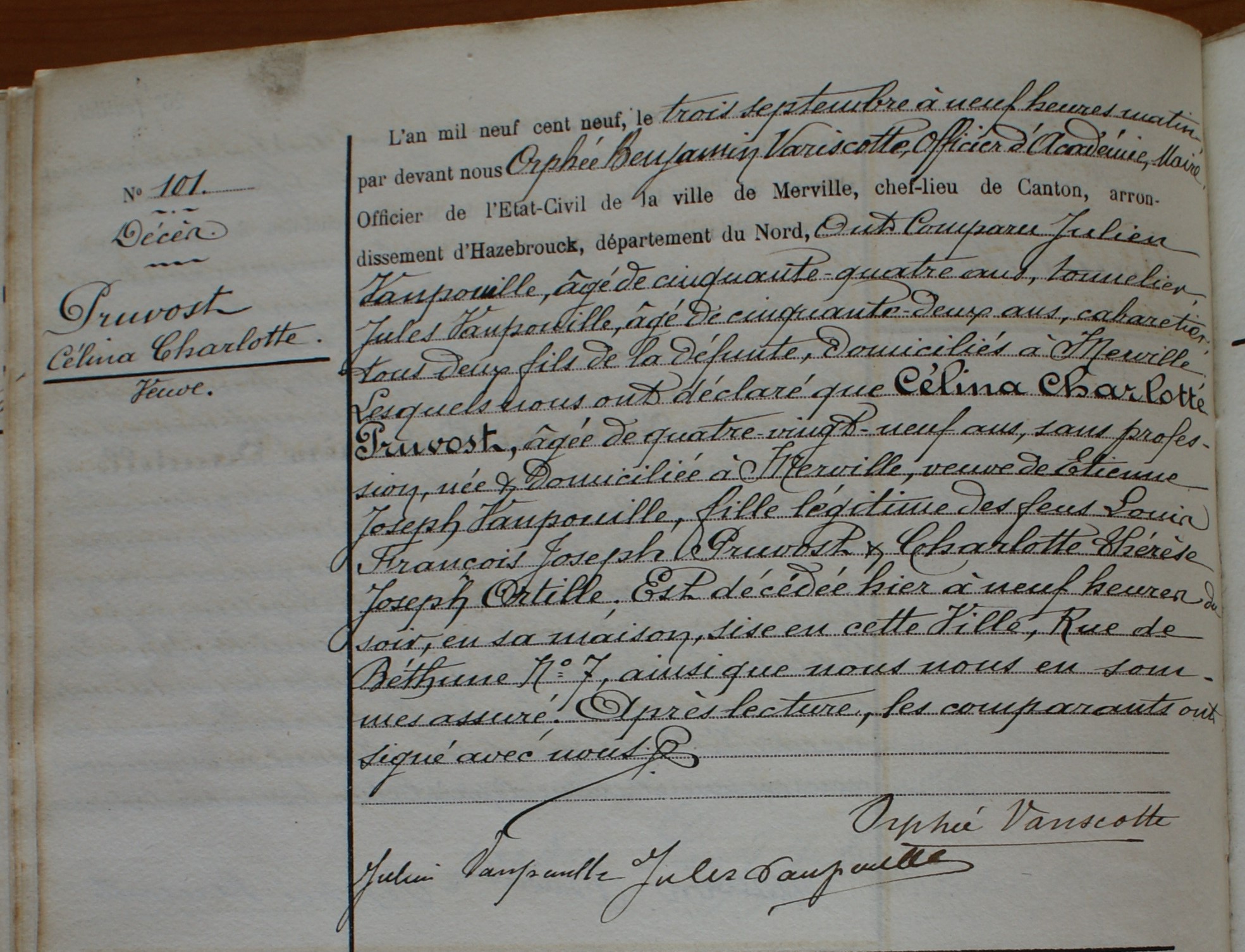 Acte de décès de Celine Charlotte PRUVOST Patriarche & Matriarche