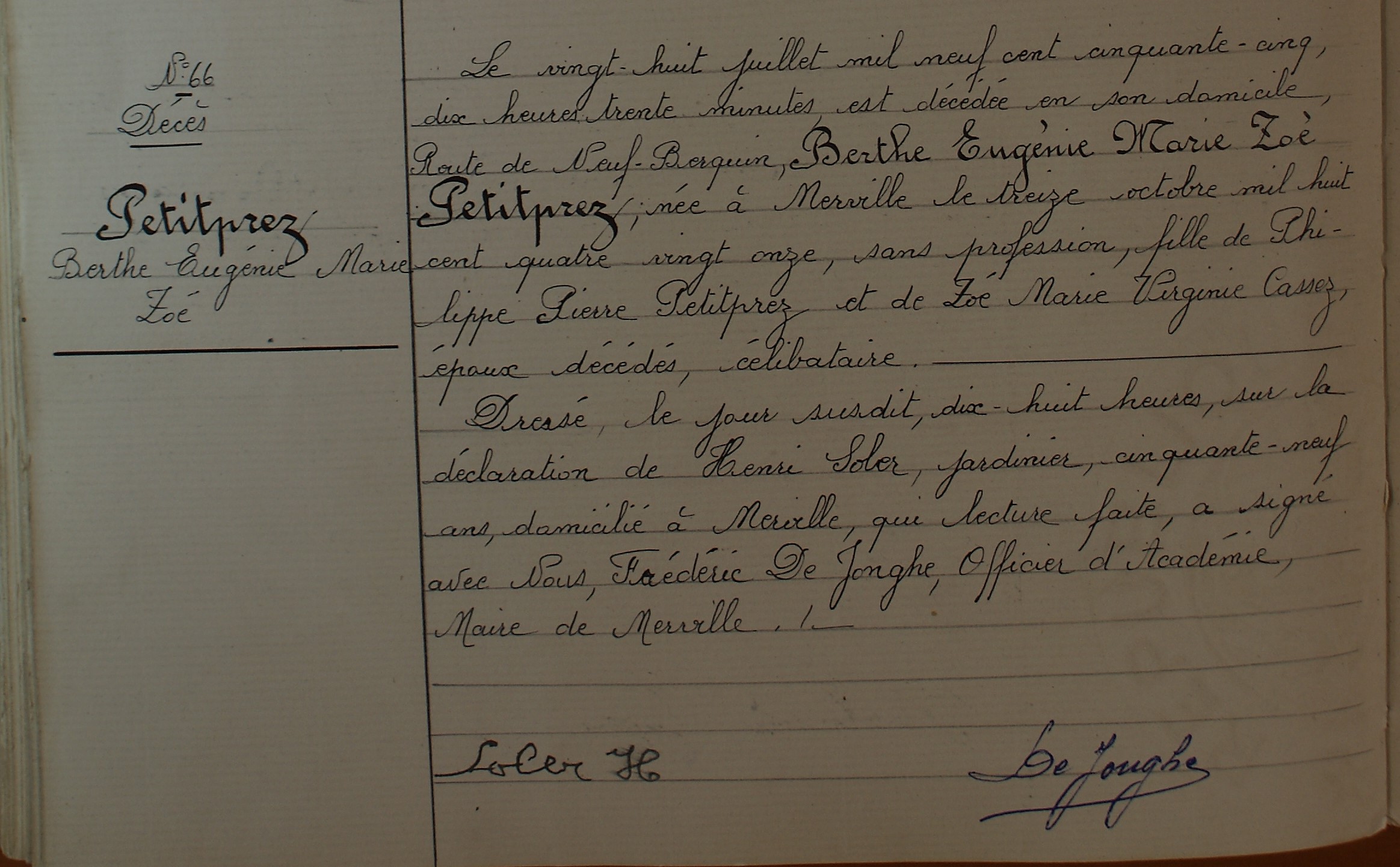 Décès Jeudi 28 juil 1955 Merville, 59660, Nord, Hauts-de-France, France