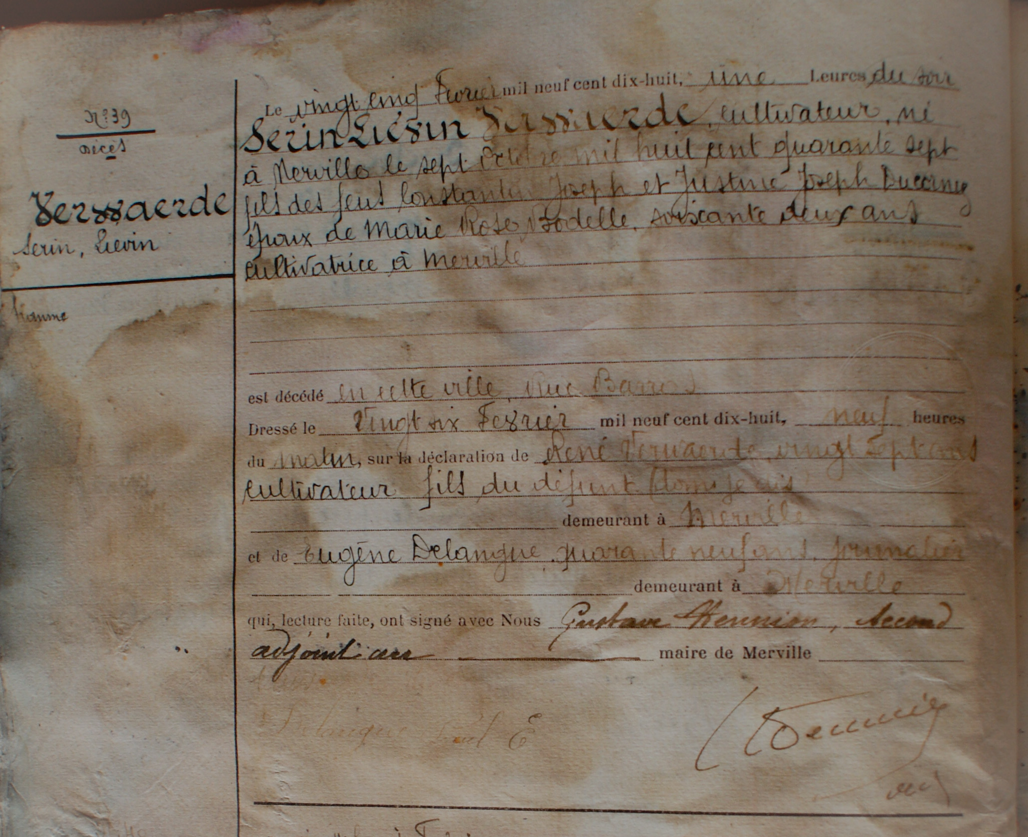 Profession Cultivateur Décès Lundi 25 fév 1918 Merville, 59660, Nord, Hauts-de-France, France