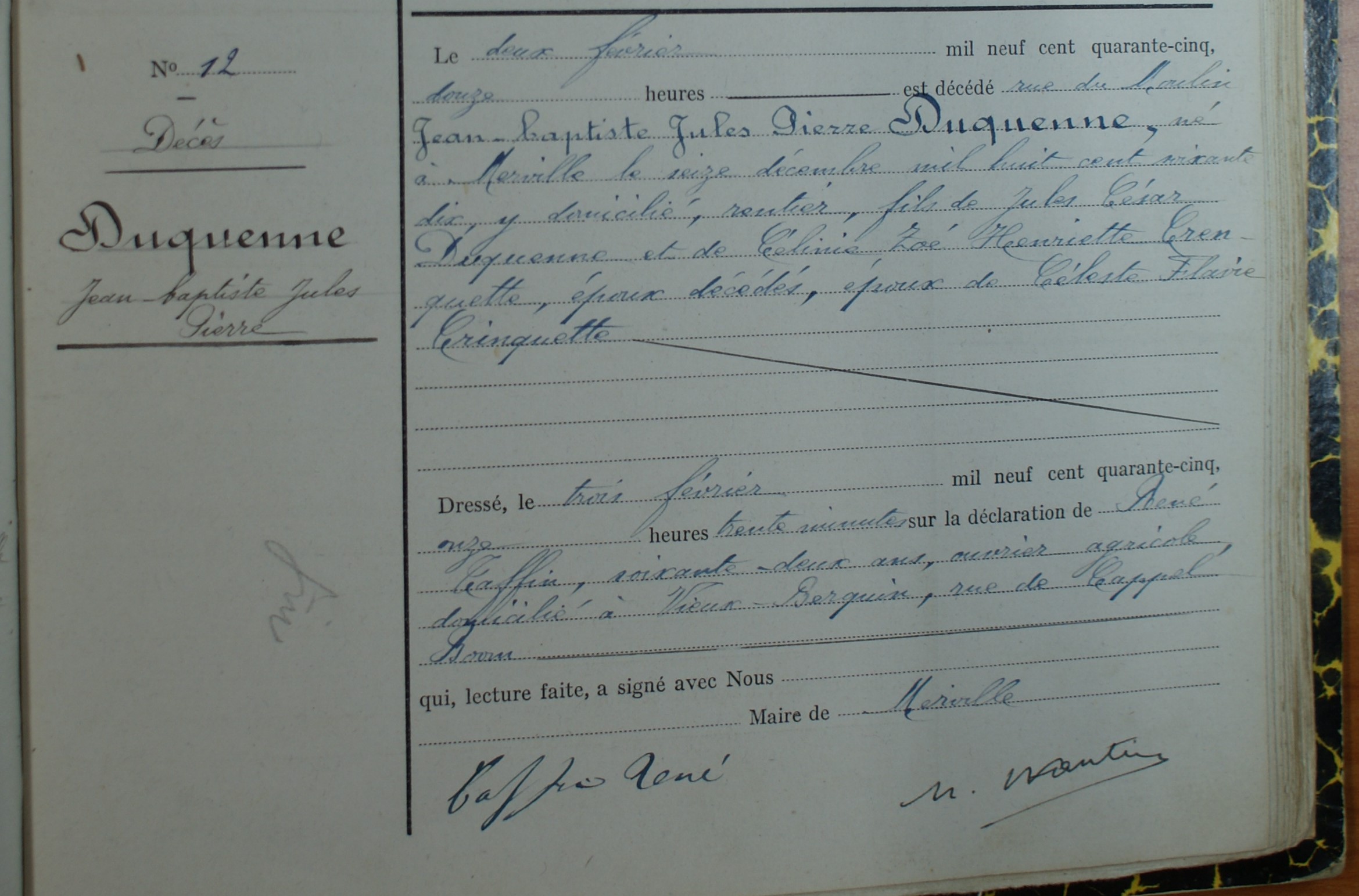 Nom DUQUENNE Jean Baptiste Jules Pierre Parenté