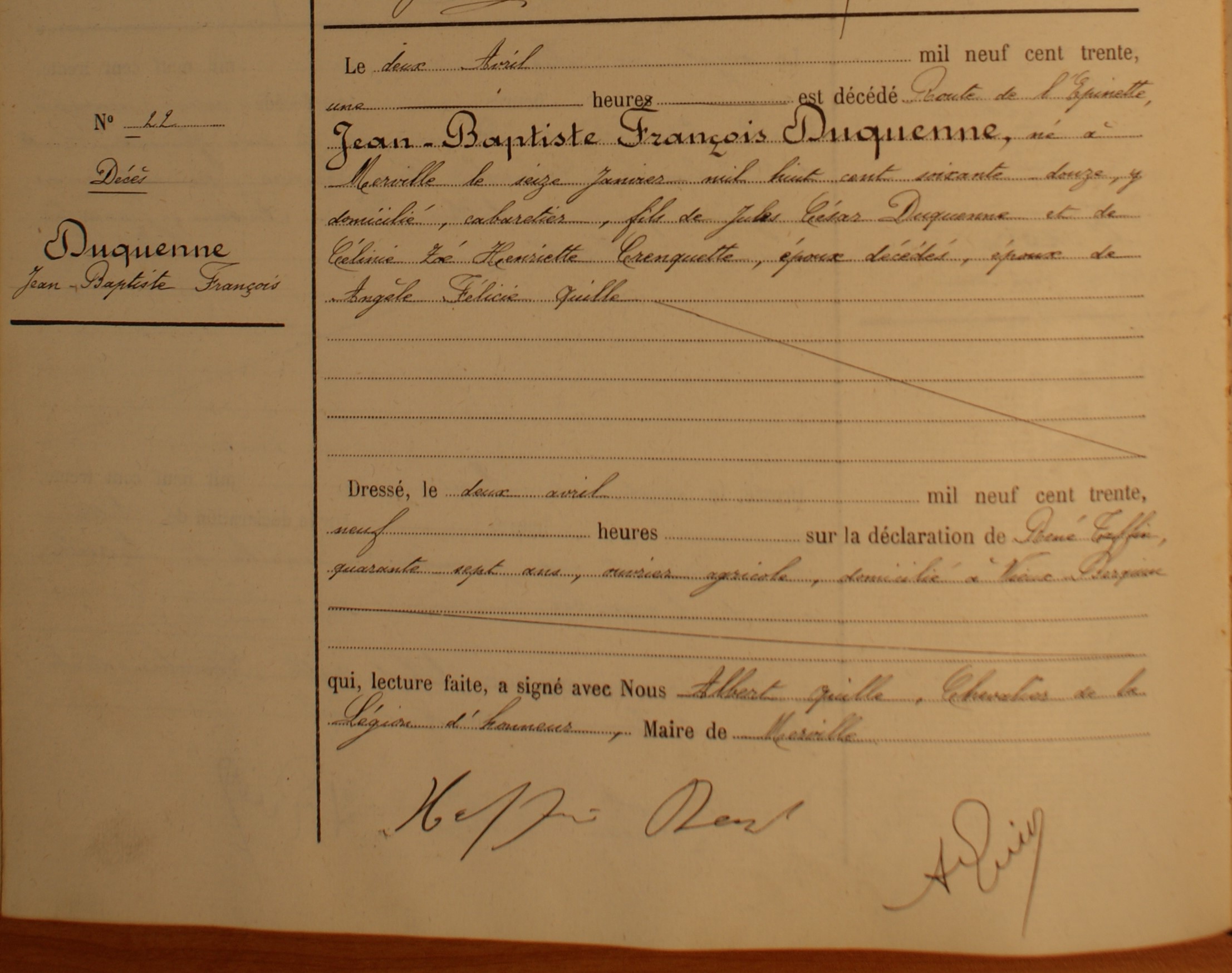 Acte de naissance de Jean Baptiste DUQUENNE Décès Mercredi 02 avr 1930 Merville, 59660, Nord, Hauts-de-France, France