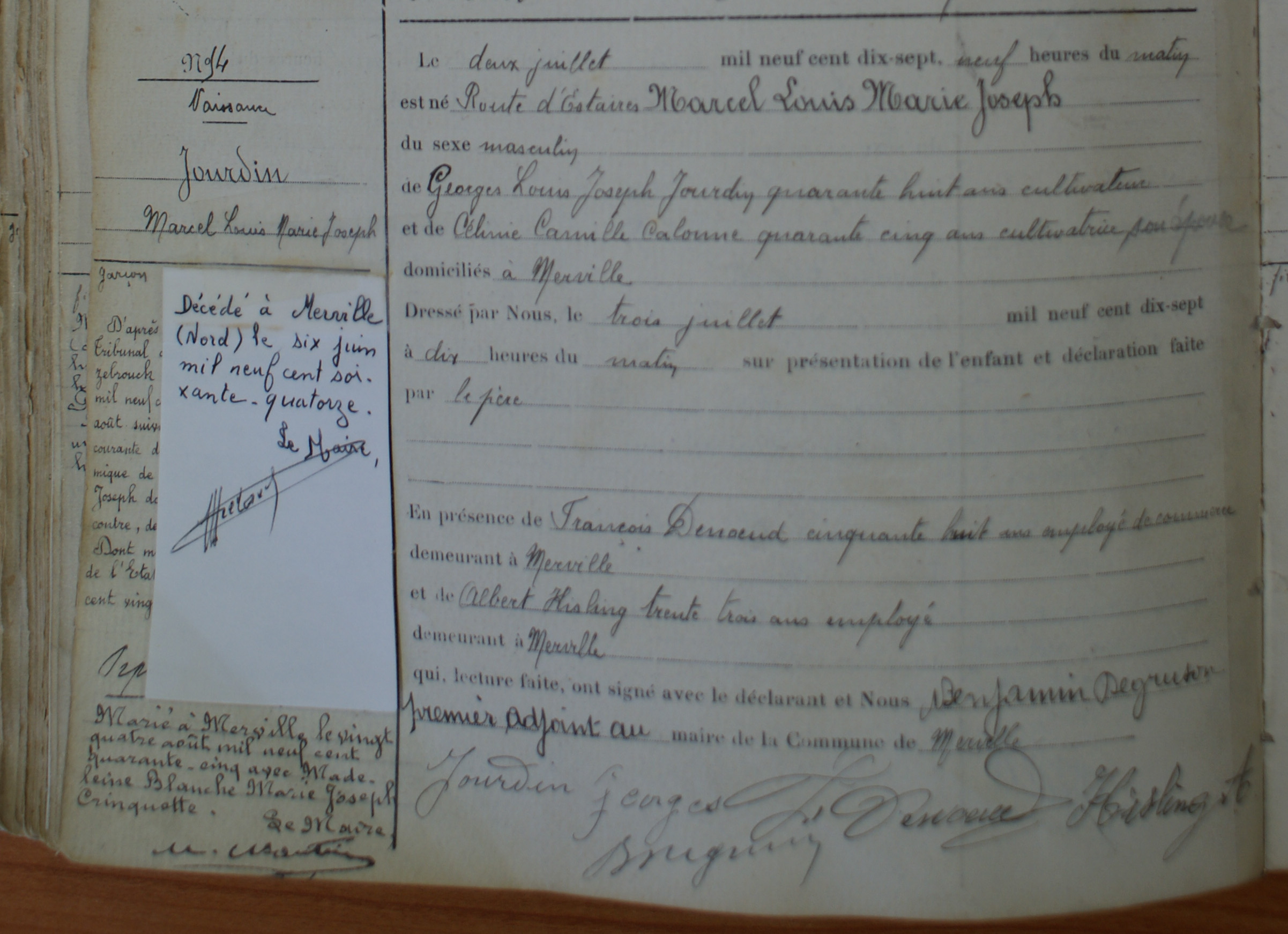 route d'EstairesActe de décès de Marcel Louis Marie Joseph JOURDAIN Patriarche & Matriarche