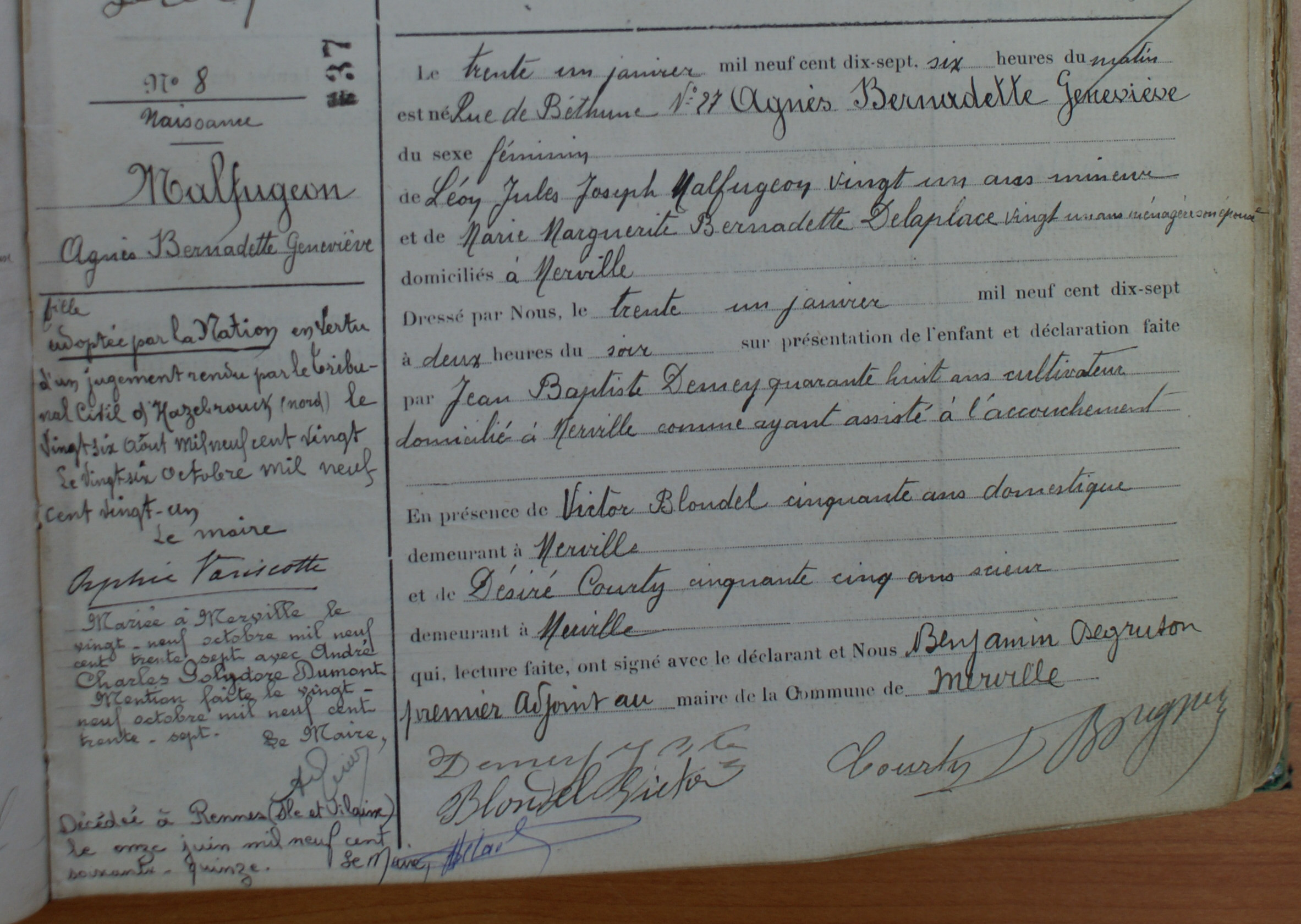 Prénom: Agnès Bernadette Geneviéve Agnès Bernadette Geneviéve | Nom: MALFUGEON MALFUGEON