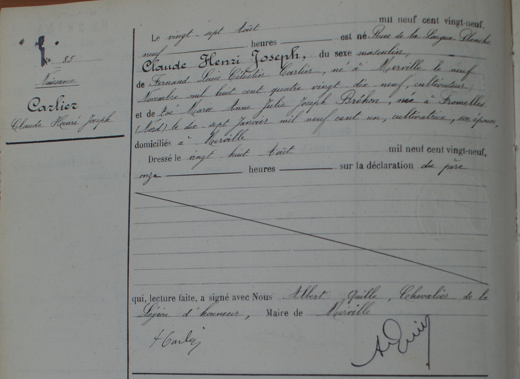 Prénom: Claude Henri Joseph Claude Henri Joseph | Nom: CARLIER CARLIER