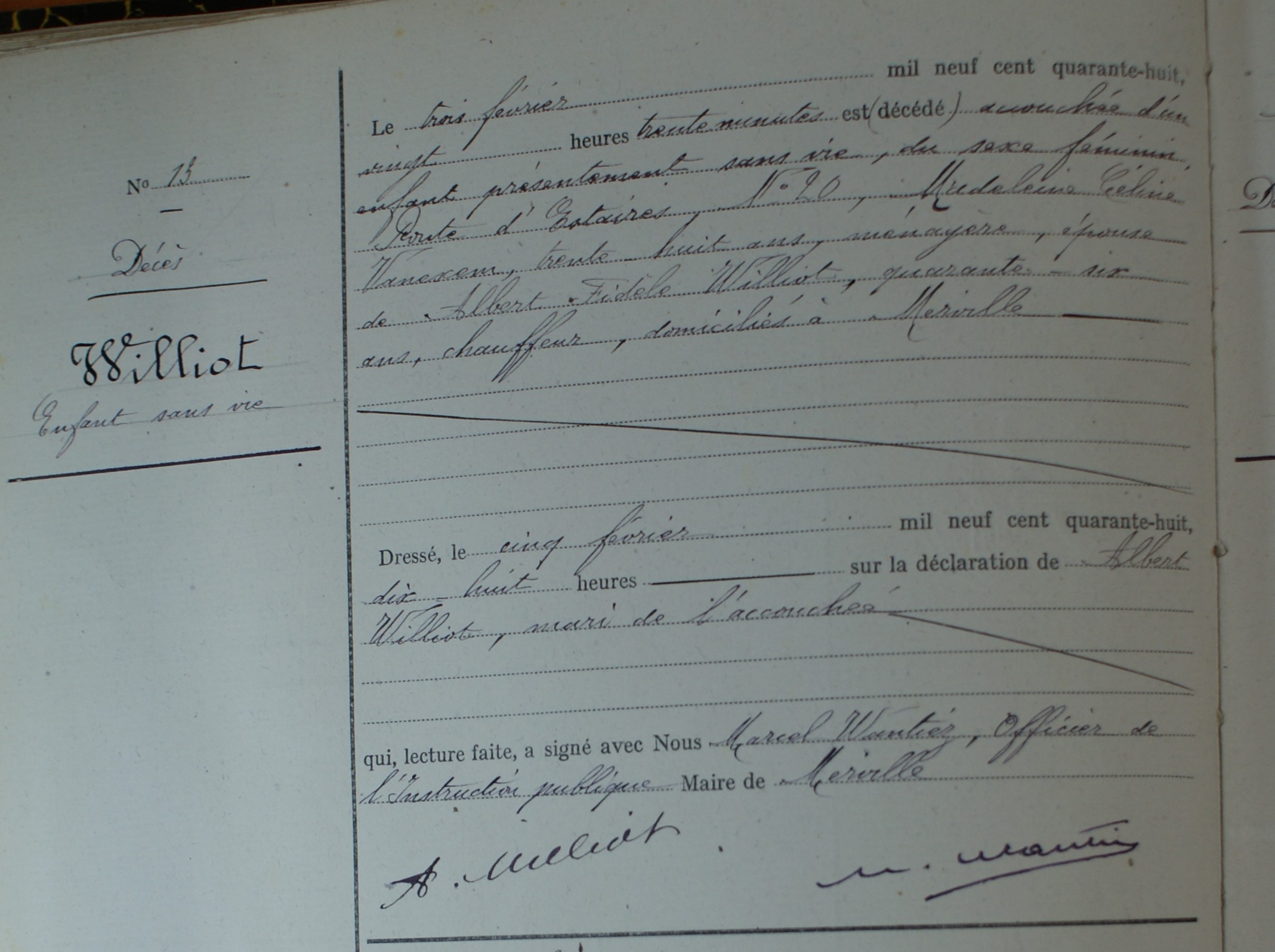 (Âgé de 0 ans)3. WILLIOT Enfant mort né, n. Mardi 03 fév 1948, Merville, 59660, Nord, Hauts-de-France, France