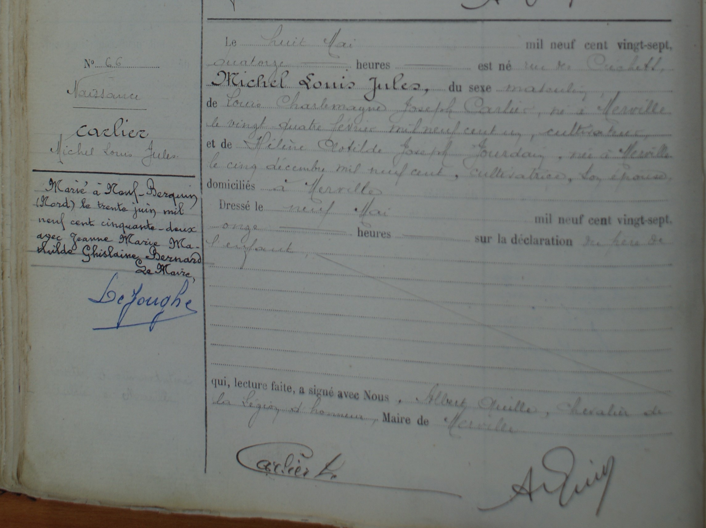 Acte de naissance de Michel Louis Jules CARLIER Profession Cultivateur Décès Mercredi 05 sept 2012 Béthune, 62400, Pas-de-Calais, Hauts-de-France, France