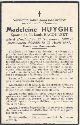 ▻ BACQUAERT Louis Laurent Joseph , m. Mercredi 13 oct 1926+ 3. HUYGHE Berthe Marie Joseph, n. Dimanche 01 mars 1903, Bailleul, 59270, Nord, Hauts-de-France, France