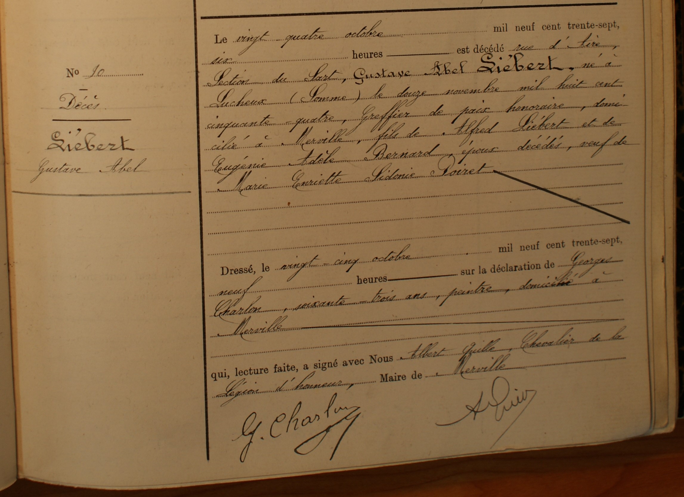 Acte de naissance de Gustave Abel LIEBERT Décès Dimanche 24 oct 1937 Le Sart, 59660, Nord, Hauts-de-France, France Hameau de Merville (59660)