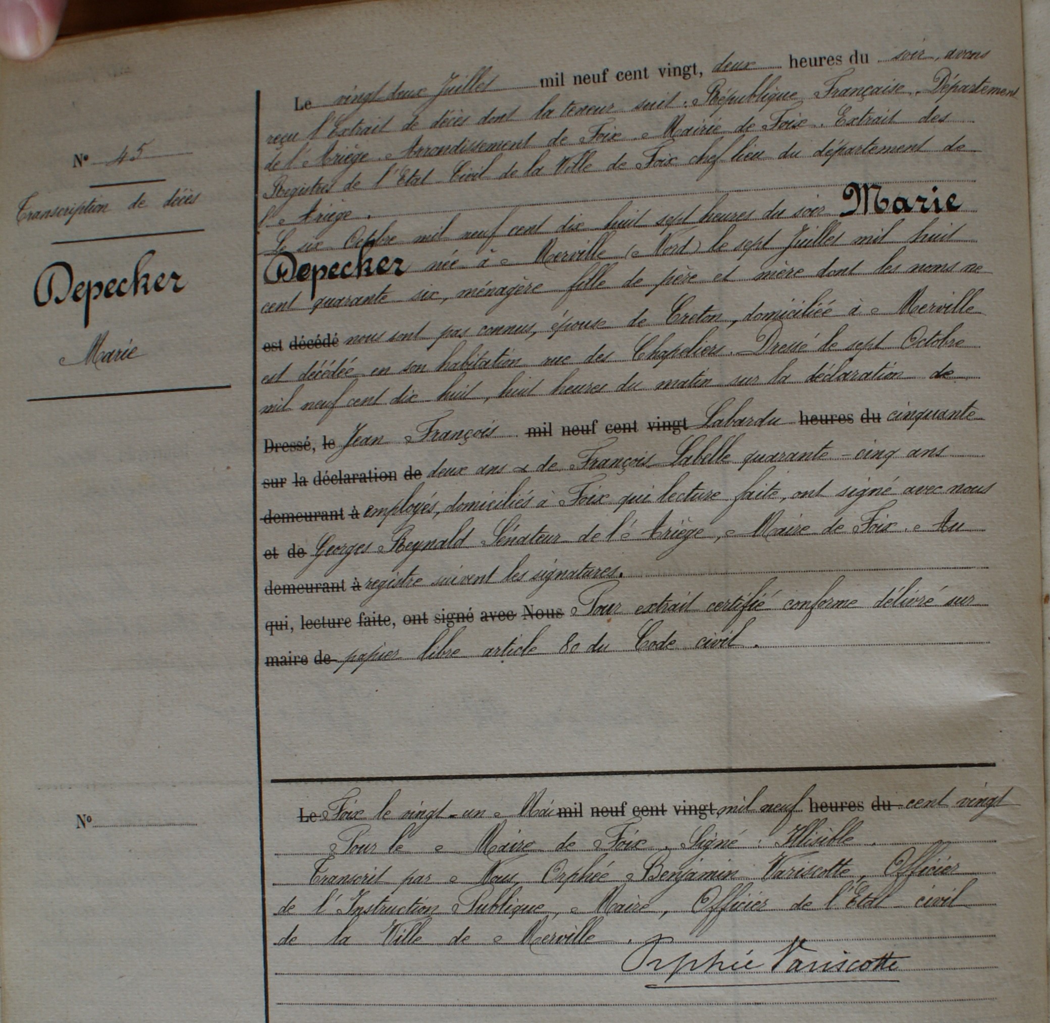 Cultivatrice Décès Dimanche 06 oct 1918 Foix, 09000, Ariège, Occitanie, France