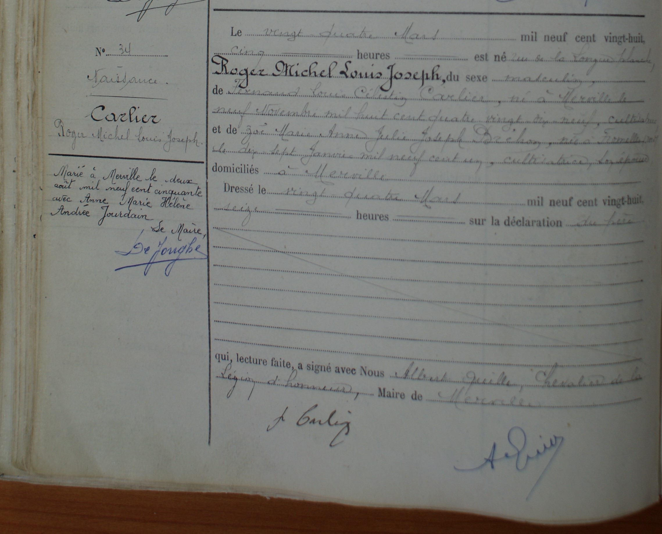 Prénom: Roger Michel Louis Joseph Roger Michel Louis Joseph | Nom: CARLIER CARLIER