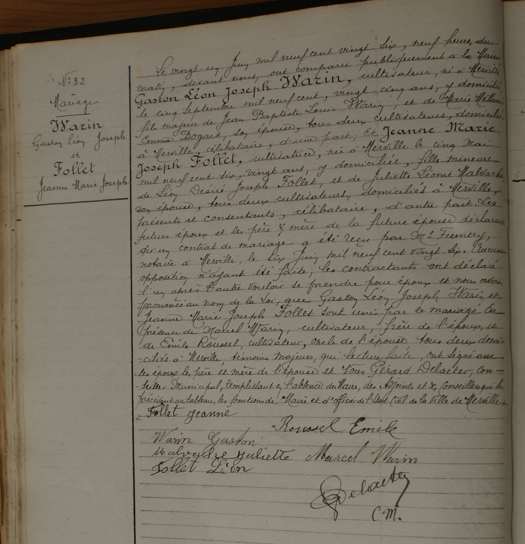 Age au mariage Lui : 22 ans et 10 mois - Elle : 22 ans et 6 mois. Enfants + 1. WARIN A. + 2. WARIN C.M.J. ID Famille F002366 Feuille familiale | Tableau familial
