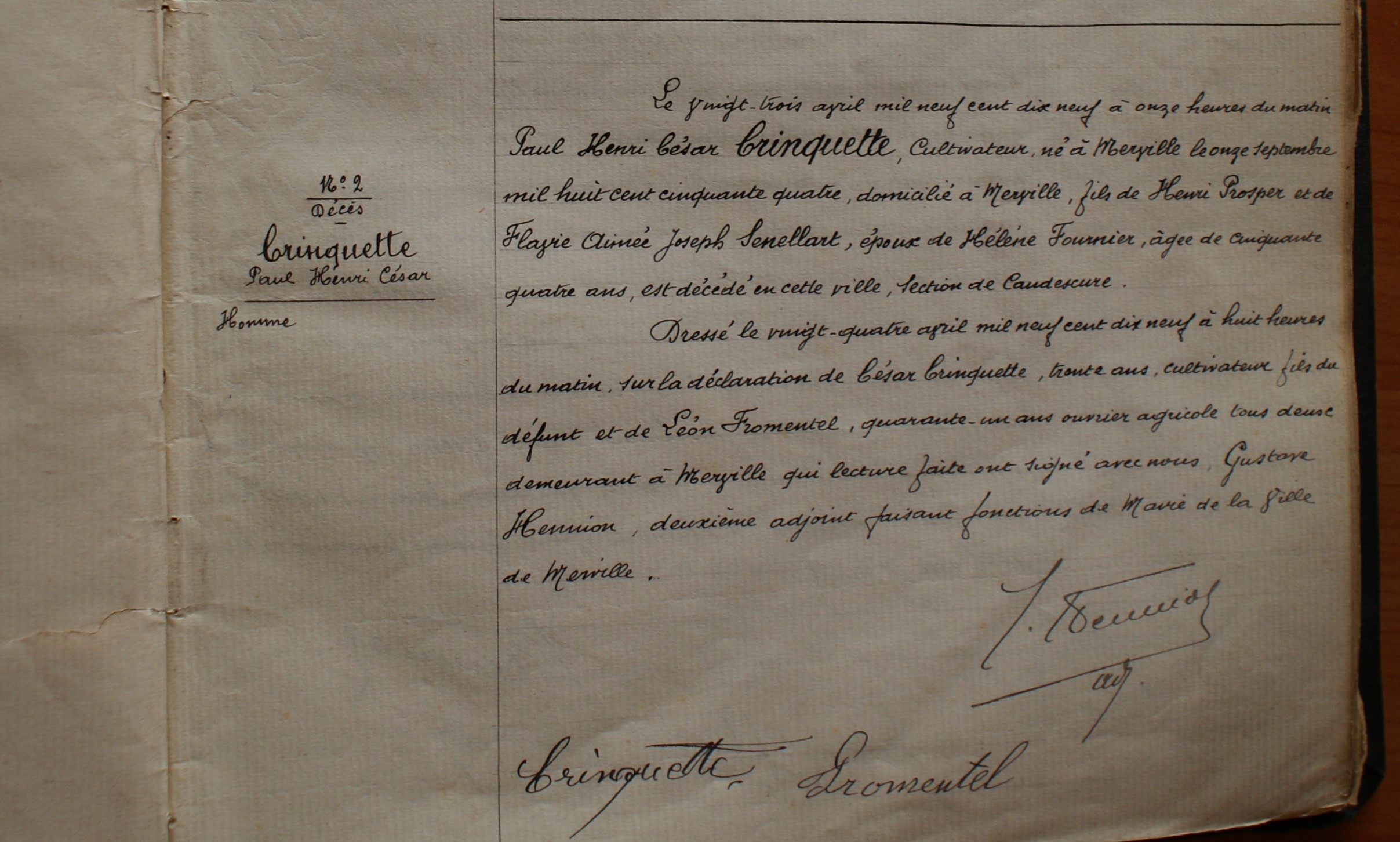 Prénom: Paul Henri Cesar Jacques Paul Henri Cesar Jacques | Nom: CRINQUETTE CRINQUETTE