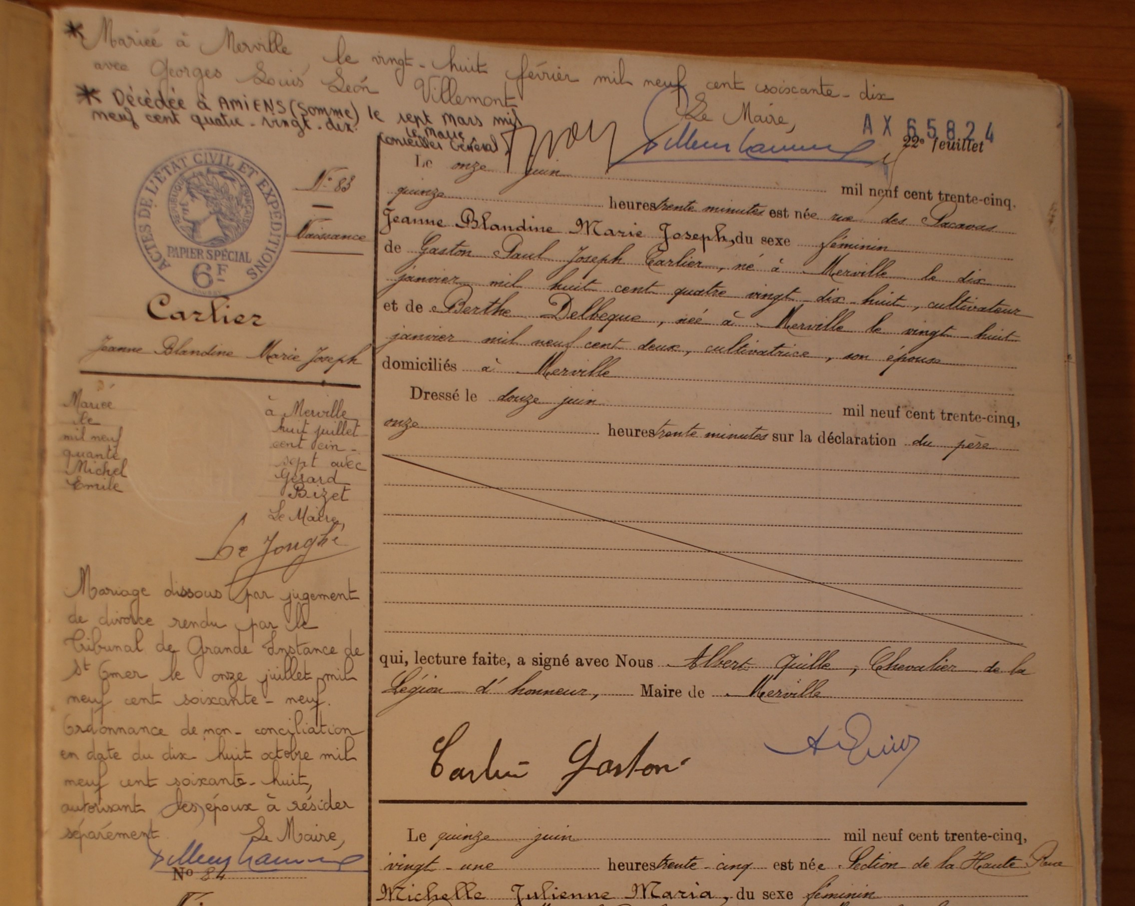 rue des PacavasActe de naissance de Jeanne Blandine Marie Joseph CARLIER Décès Mercredi 07 mars 1990 Amiens, 80000, Somme, Hauts-de-France, France